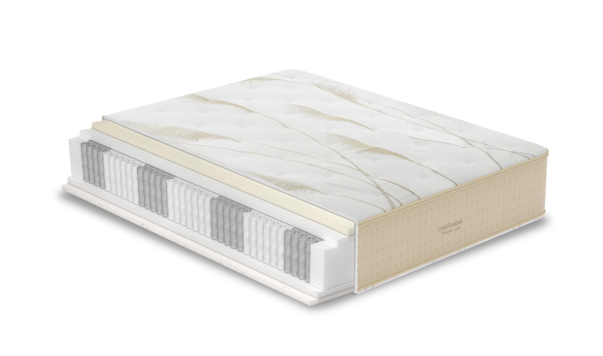 Flower Lux je vrhunska vzmetnica iz družine mebloJOGI®, namenjena vsem, ki si želijo brezkompromisnega udobja in elegantnega videza v spalnici. Obojestranska zasnova vam omogoča, da si sami izberete svojo stran udobja – toplo objetje zimske strani ali svež pridih poletne strani. Vzmetnica je razvita in izdelana v Sloveniji iz skrbno izbranih evropskih materialov, po preverjeni tradiciji, ki ji zaupajo generacije.